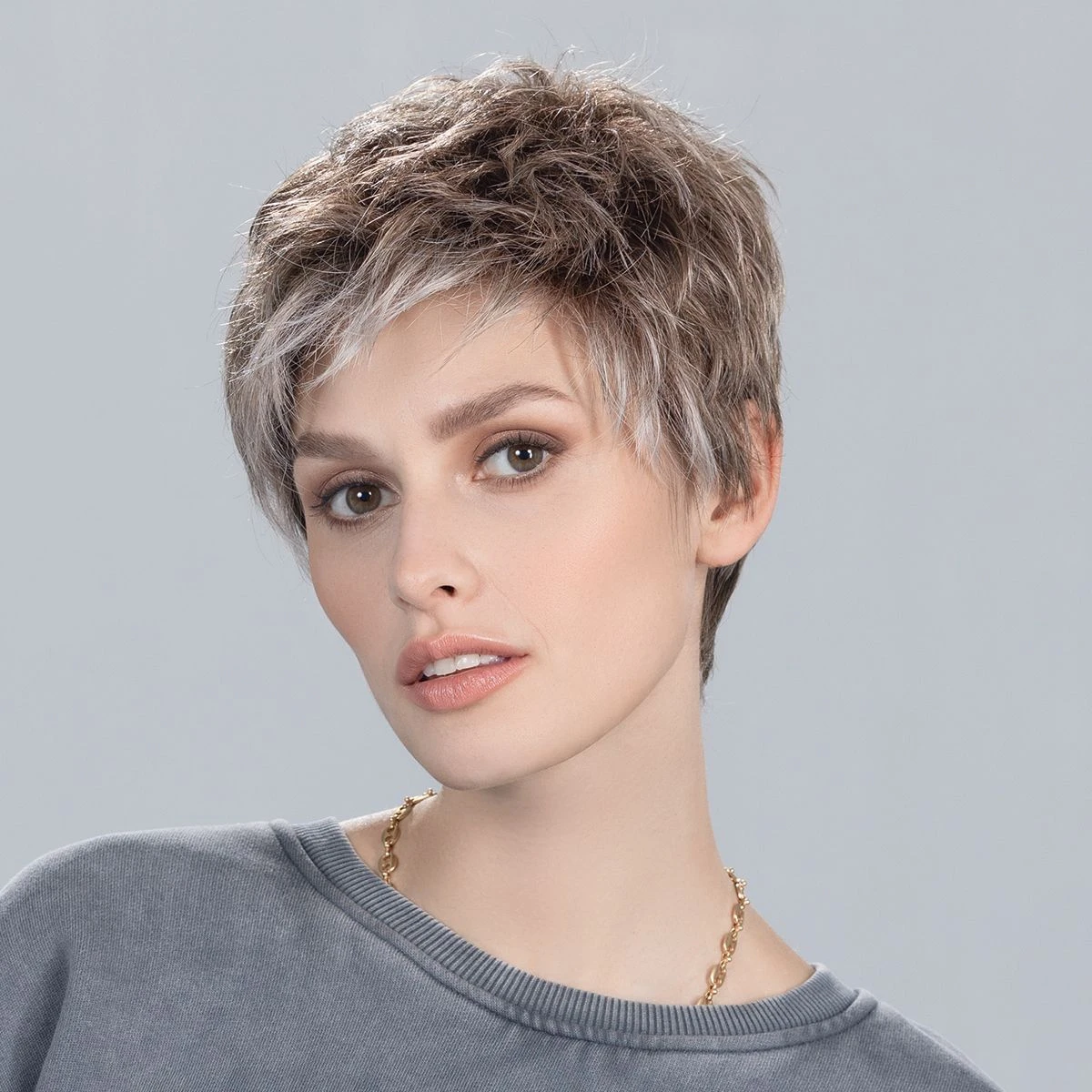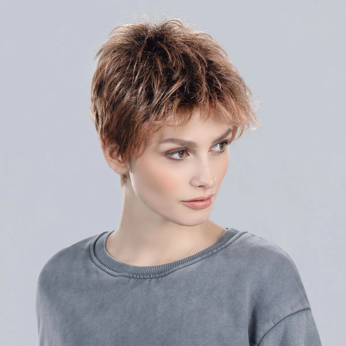 - rooted - u kořínků je paruka tmavší než je zobrazený odstín, vlasy mají odrost